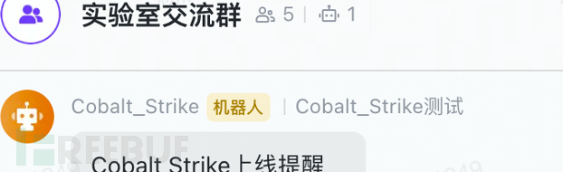 2.当受害者运行攻击恶意程序,飞书机器人就好在群里进行上线提示。