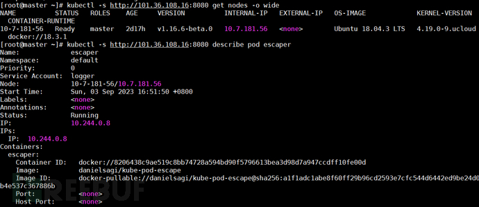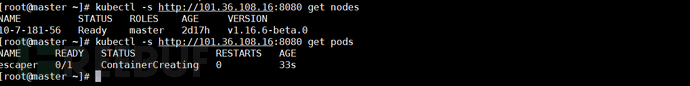 kubectl -s http://101.36.108.16:8080 get pods describe pod escaper