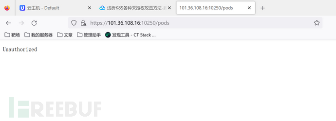 如果目标 K8s 的 6443 端口开启了,如果配置错误,也可以导致存在未授权访问。