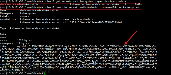 kubectl describe secret dashboard-admin-token-wtl4c -n kube-system